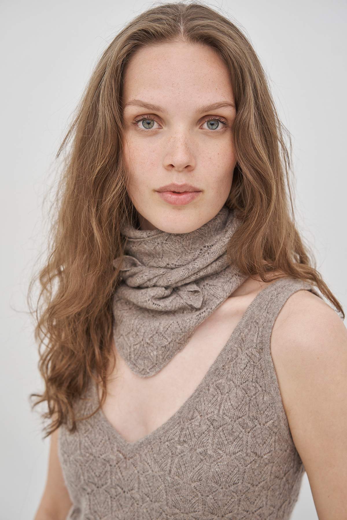 This style is perfectly sized as a small, warm scarf around the neck and adds a stylish, elegant touch to your outfit.