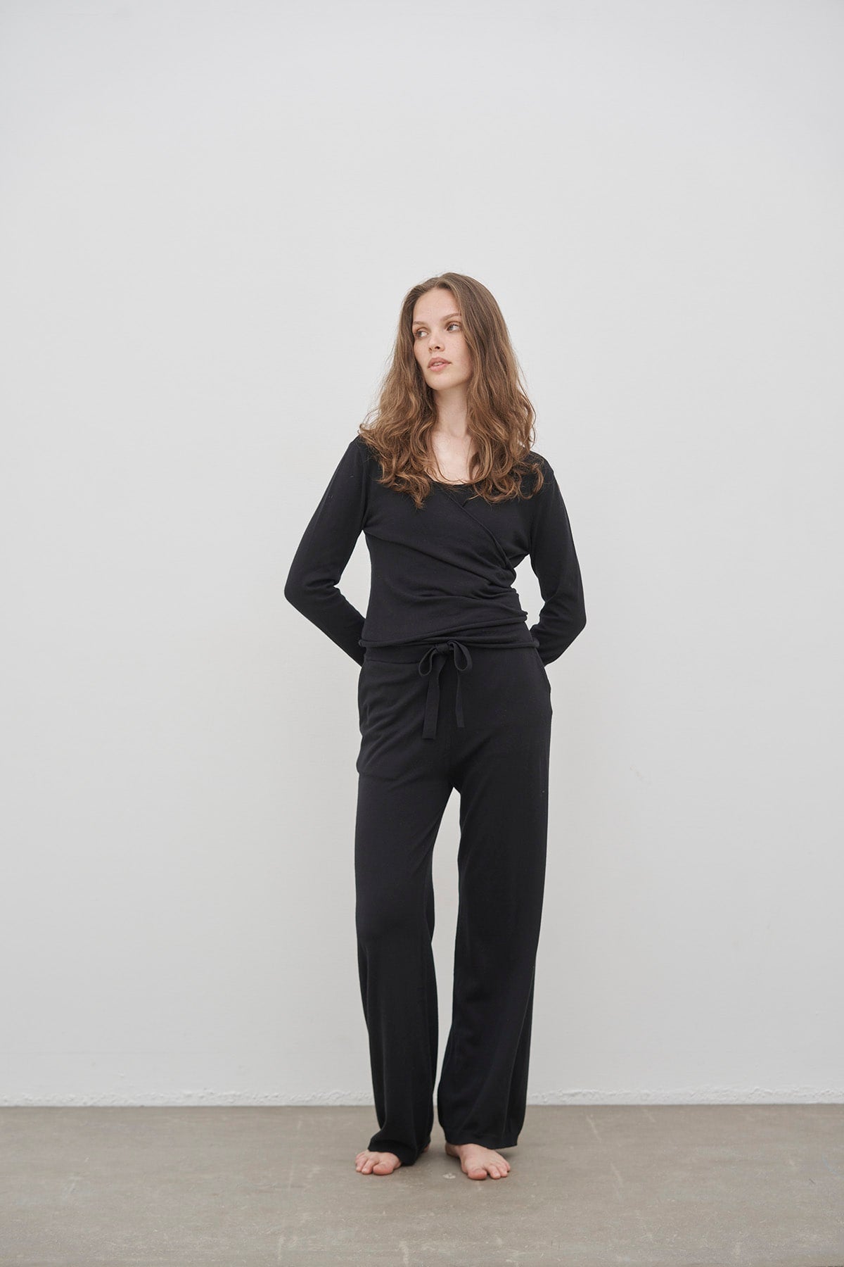 Ideal for meditation and soft movement such as yoga or pilates, yet refined enough to be worn as part of your everyday wardrobe – a calm, versatile piece that blends style with ease in every detail.