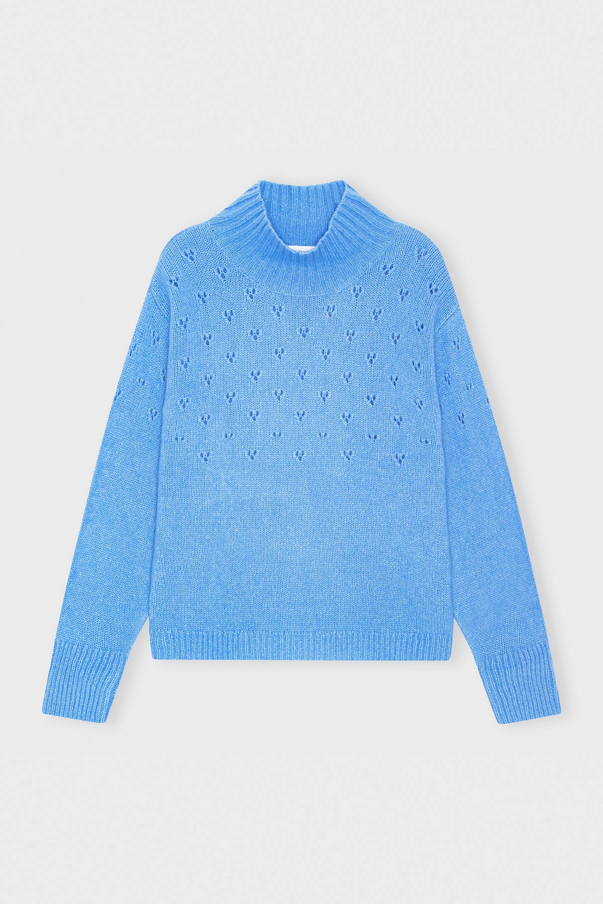 Features a beautiful, feminine pattern and ribbed hems. With its slightly cropped silhouette, high neck and relaxed fit, this sweater adds a modern touch to your wardrobe while keeping you cozy and stylish.