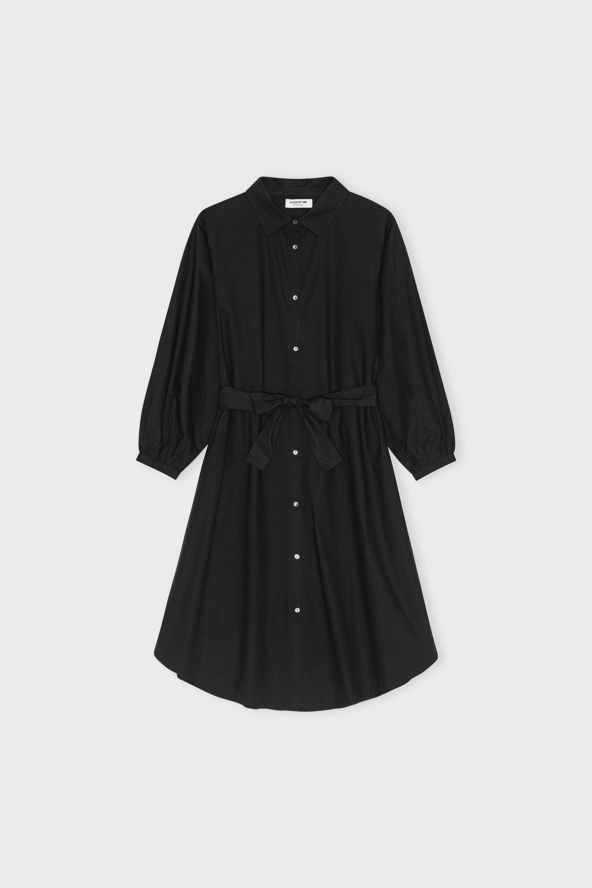 This style features slightly puffy sleeves, classic details, a lovely tie belt at the waist, and an ideal length falling just below the knee.
