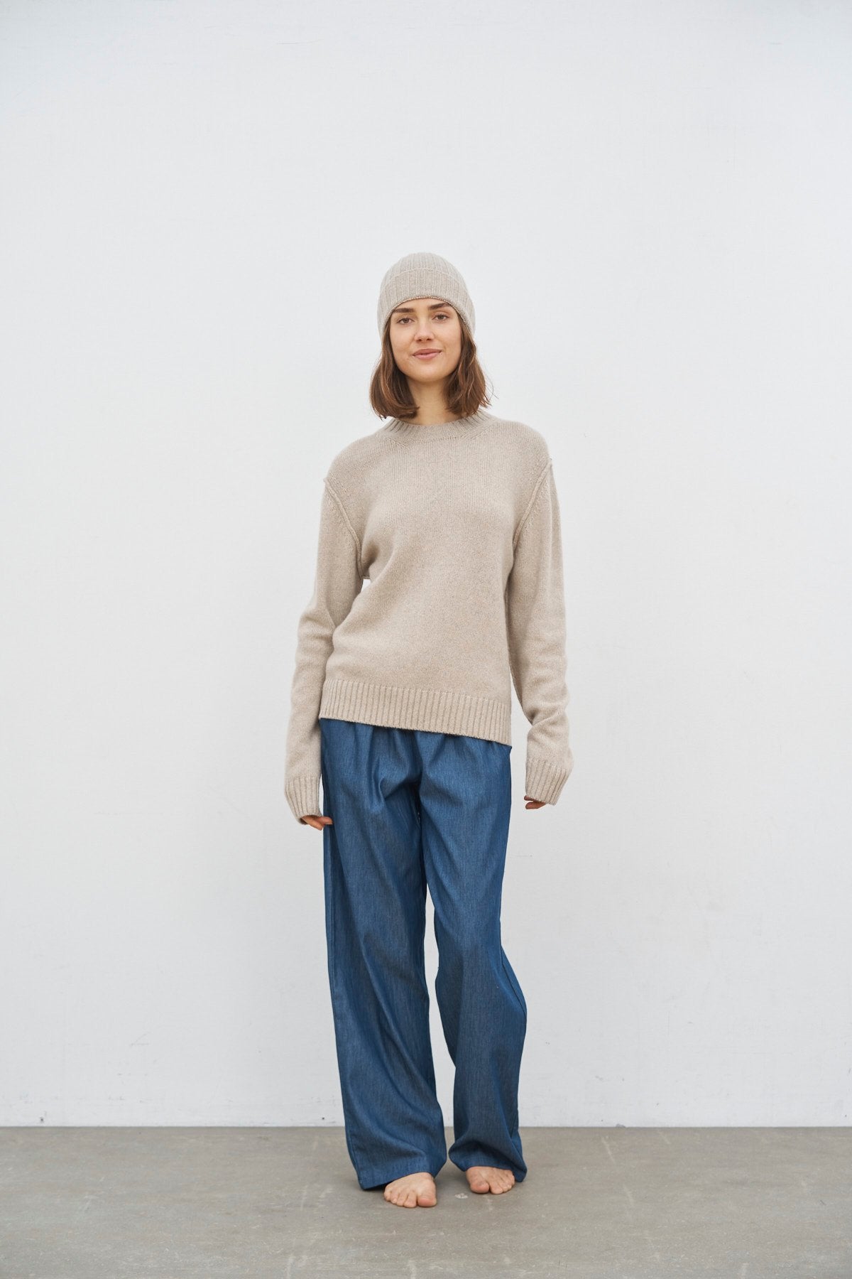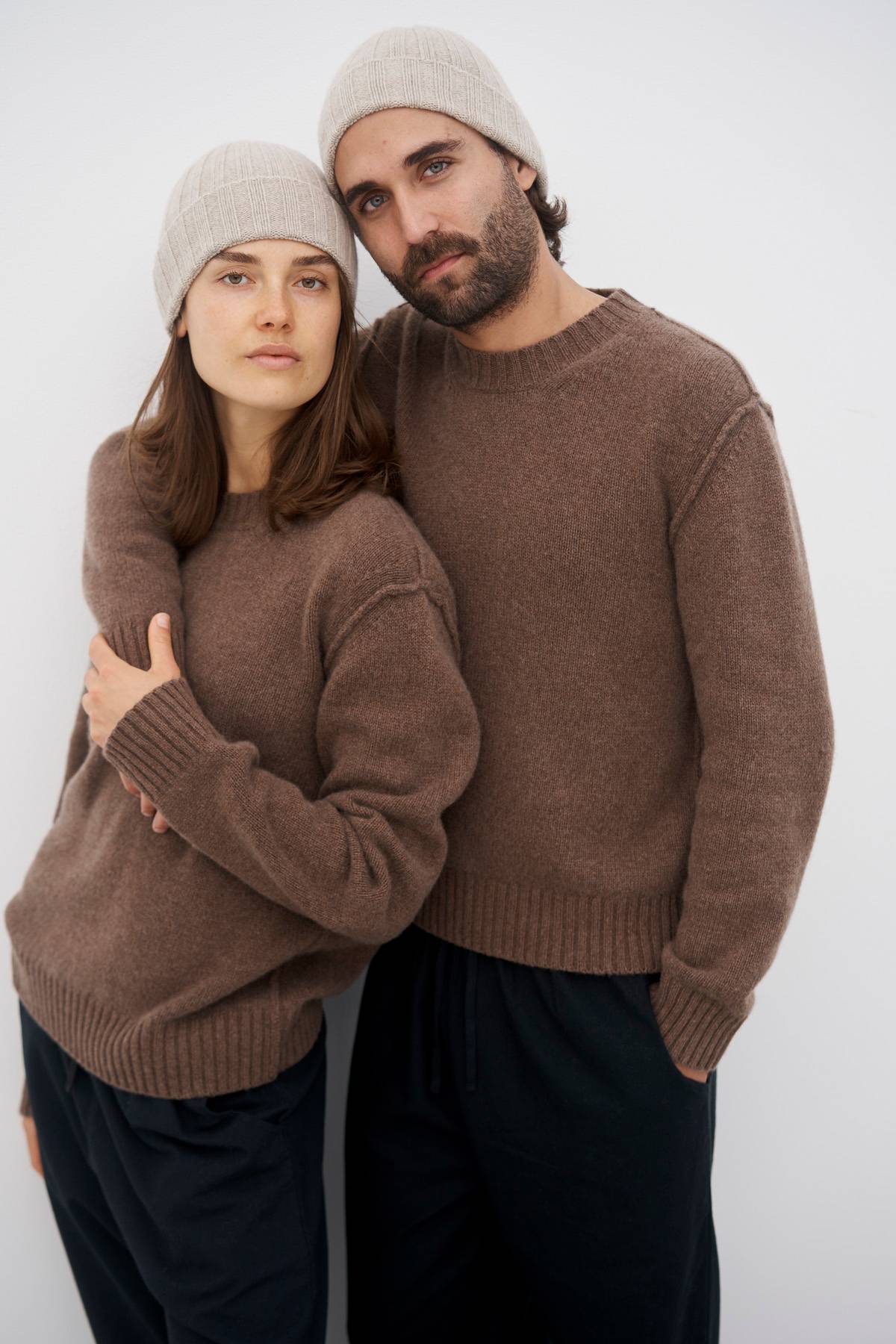 An exclusive collection of chunky sweaters and accessories, crafted in Italy from recycled cashmere and wool, designed for both men and women.