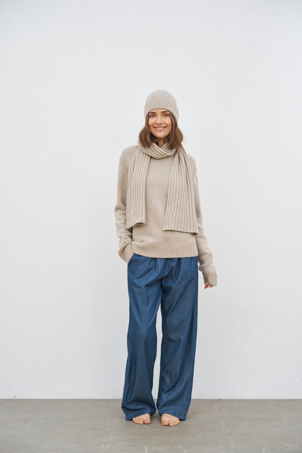An exclusive collection of chunky sweaters and accessories, crafted in Italy from recycled cashmere and wool, designed for both men and women.