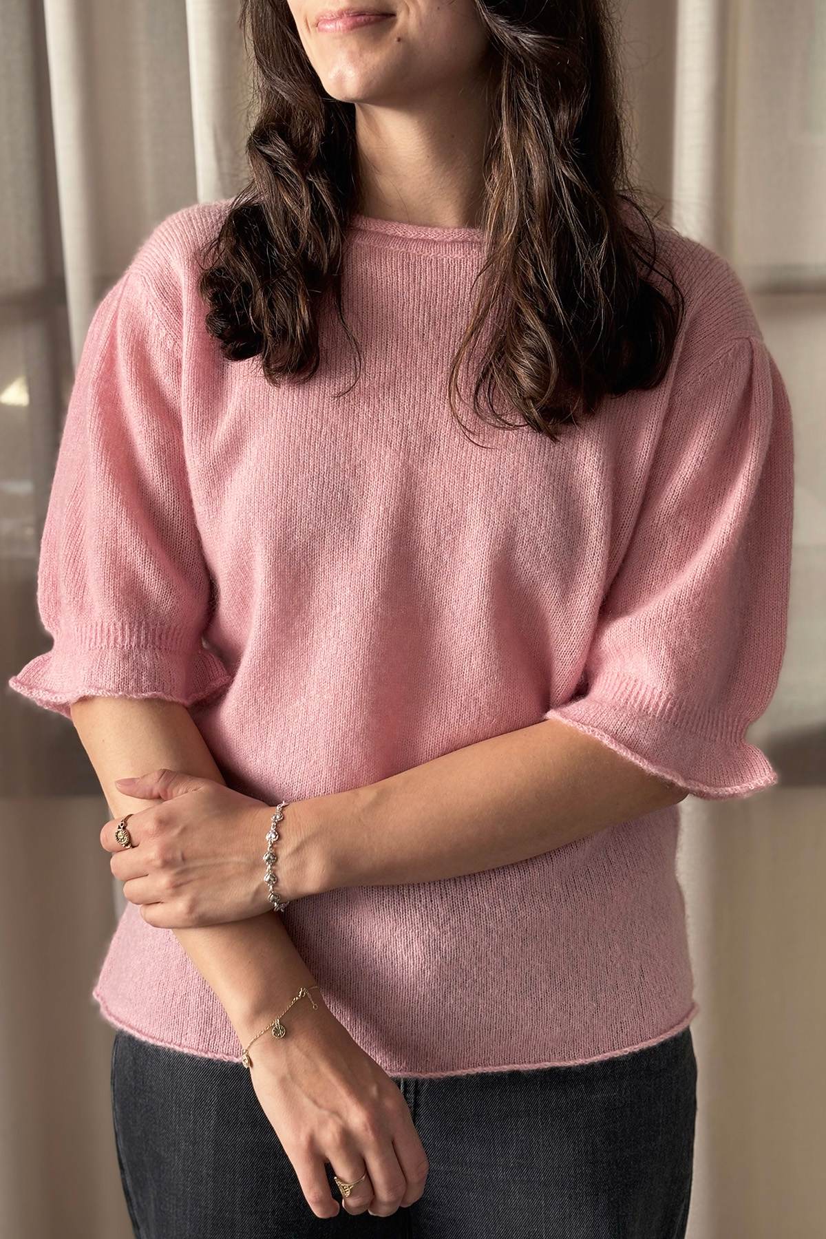 ANASTASIA features a raw round neckline and the small ribbed ruffle at the cuffs creates a nice and feminine volume on the sleeves.