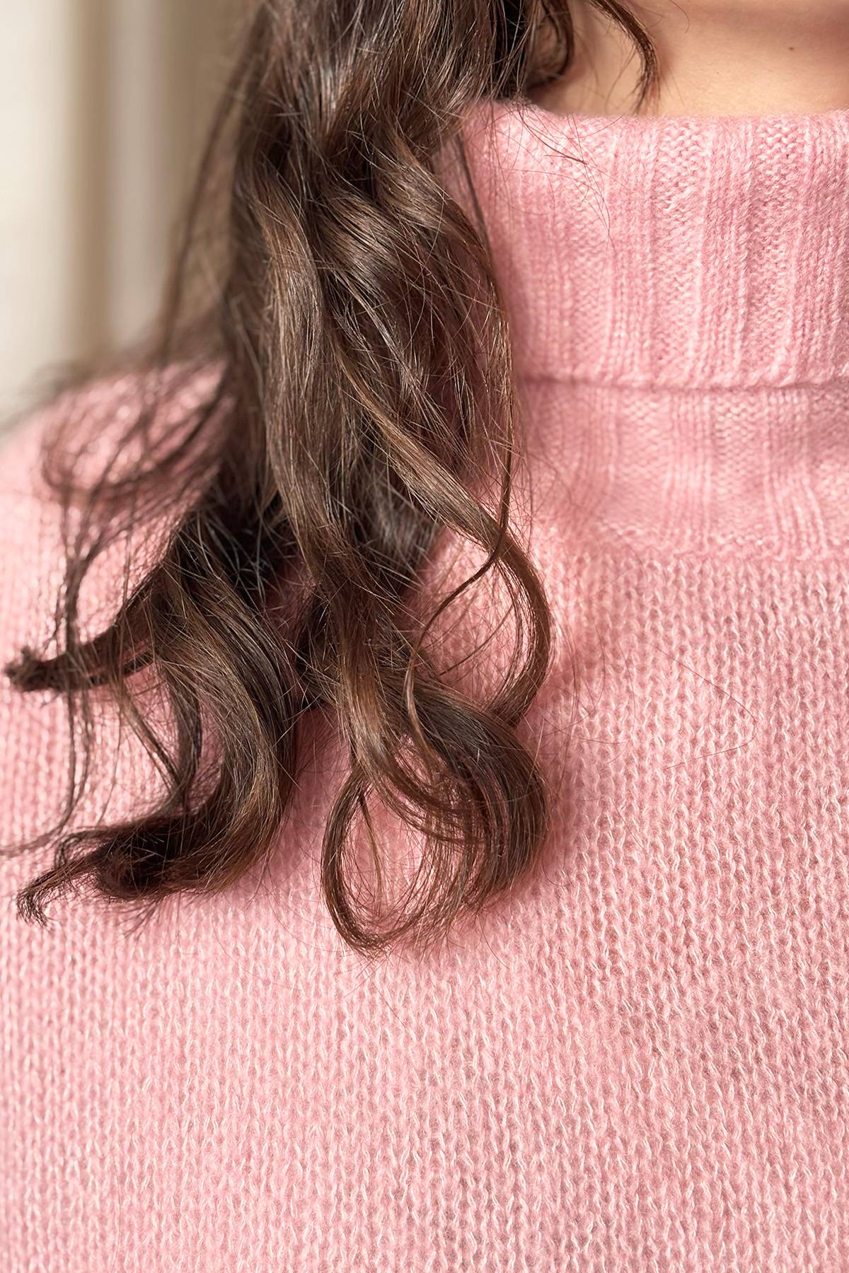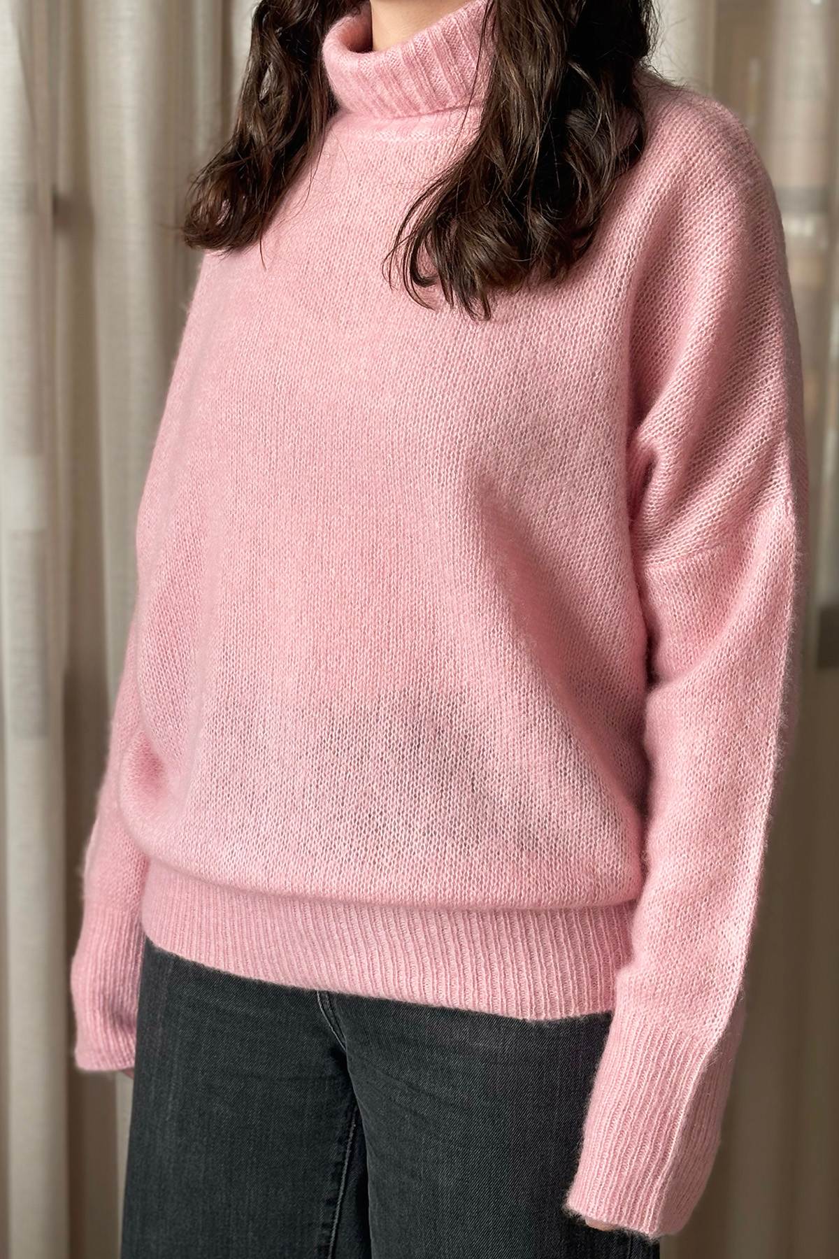 HANNE is a loose fit turtleneck sweater with dropped shoulders and long sleeves.