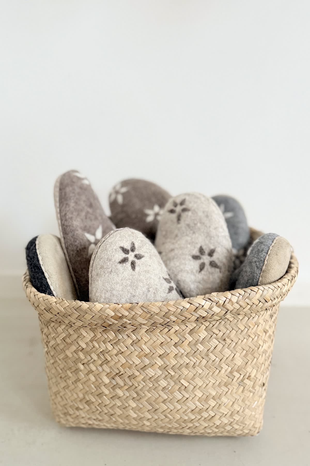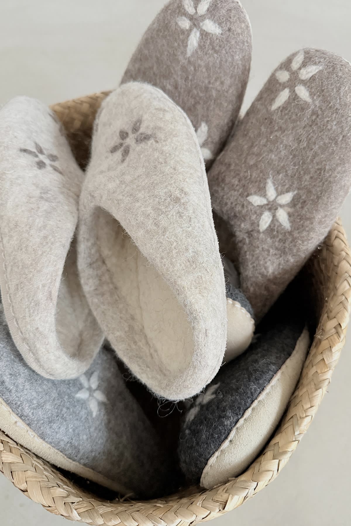Felted wool is made to be worn during any season. Wool felt is naturally insulating, keeping your feet cool during the heat of summer, and warm during winter.