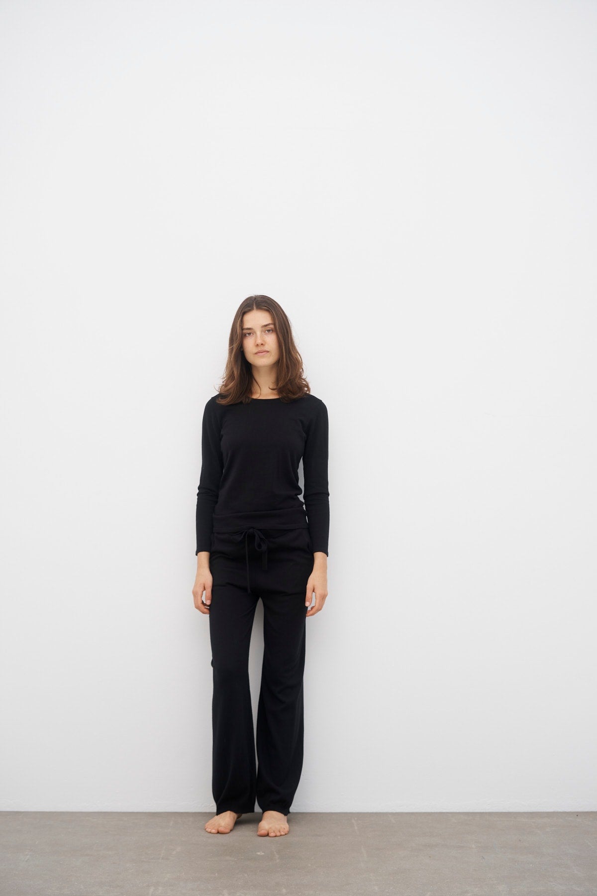 With its clean, timeless cut and classic long sleeves, the blouse offers a streamlined silhouette that’s perfect for soft movement, meditation, or simply feeling comfortable and elegant throughout your day.