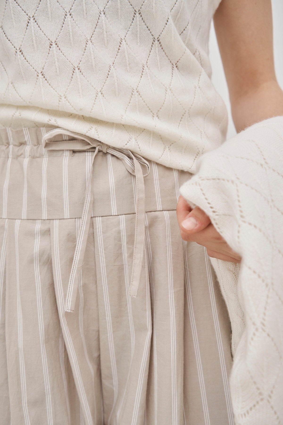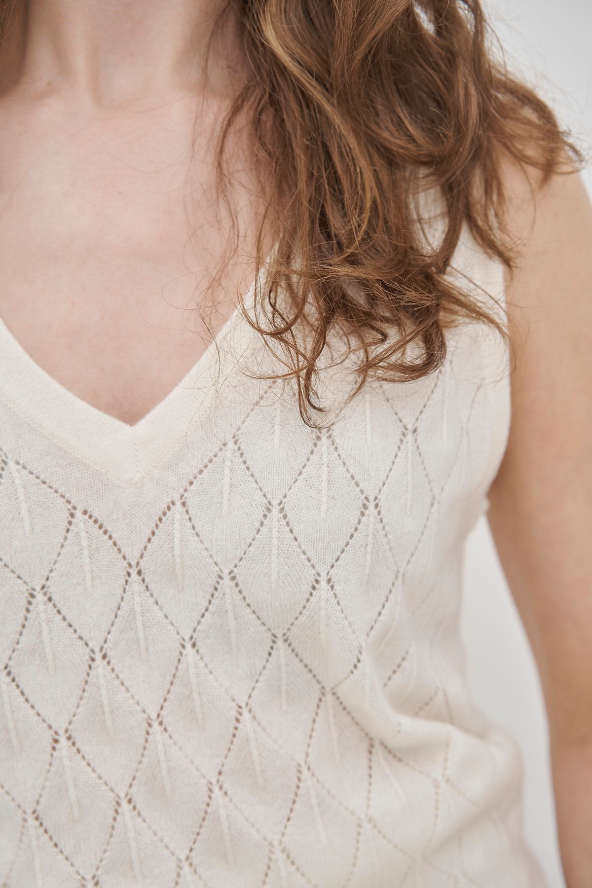 Nice, feminine top with a beautiful mix of delicate knit patterns in pure handmade cashmere.