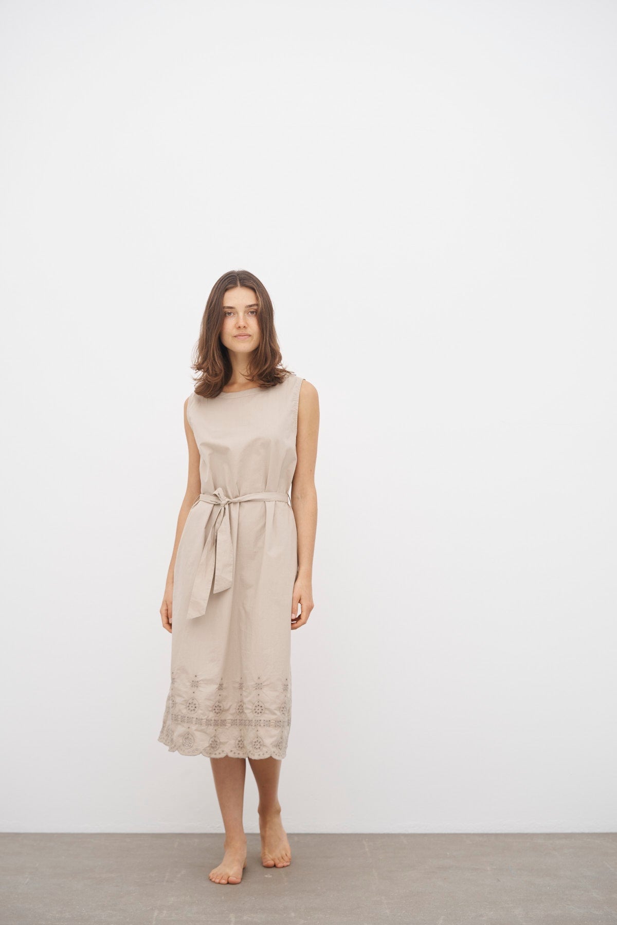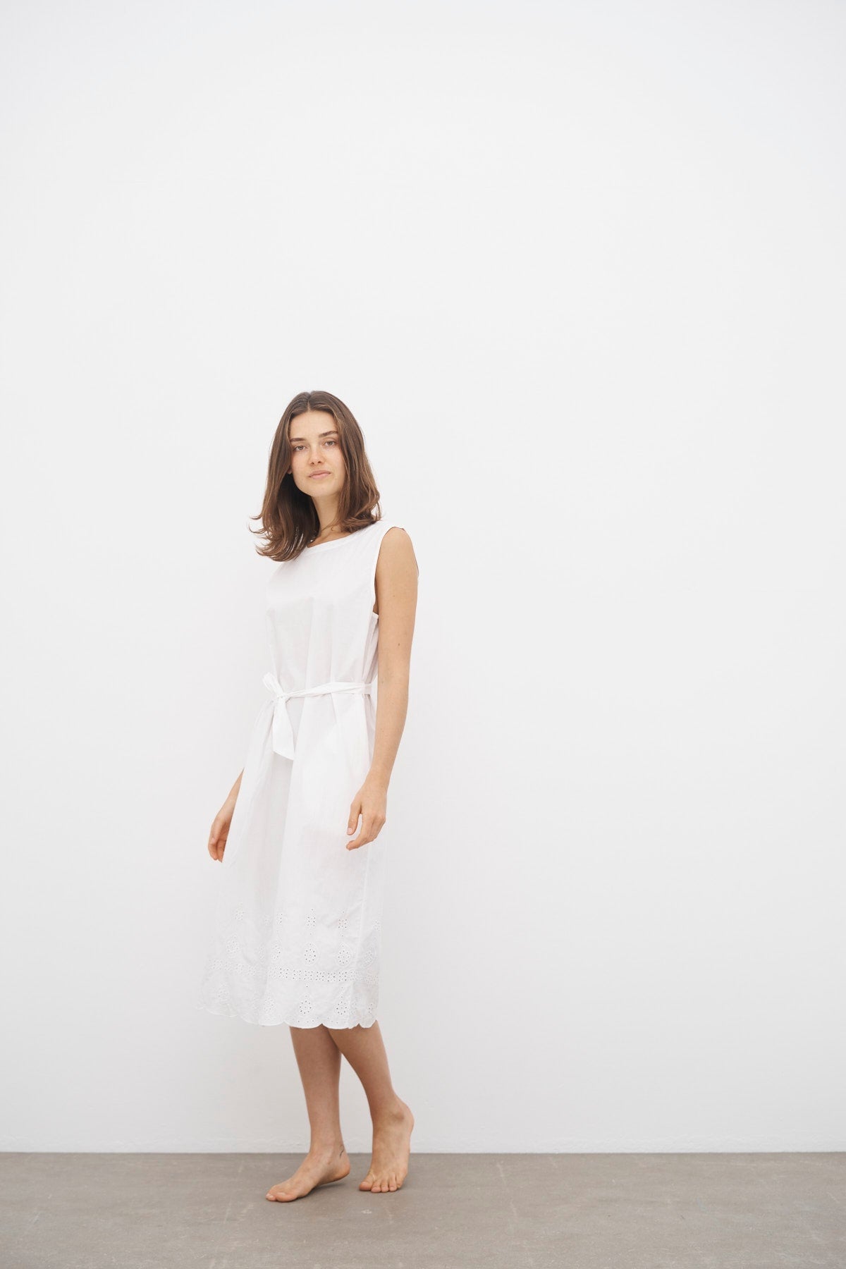 Beautiful A-line dress from the popular Flora series, made from organic cotton with an elegant and soulful broderie anglaise pattern.