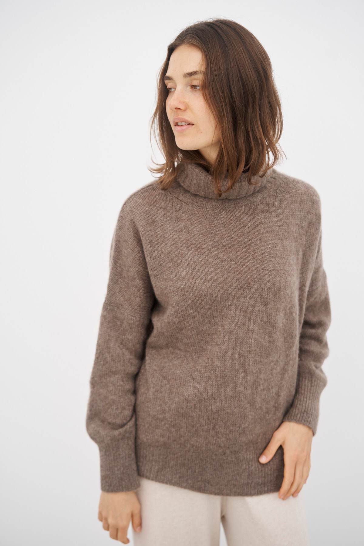 HANNE is a loose fit turtleneck sweater with dropped shoulders and long sleeves.