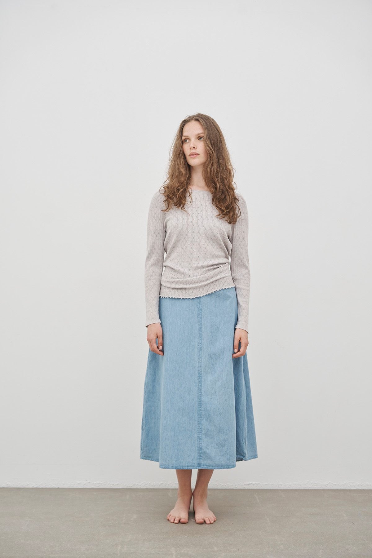 The skirt is made from soft, organic cotton denim and can be styled with a casual top for everyday wear, with lace for a party – or go all out on denim with a top from the Joy series.